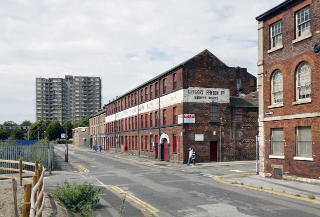 | The very last part of Viners factory waiting for the wrecking ball. In the background demolition of the Broomhall Flats is underway. |