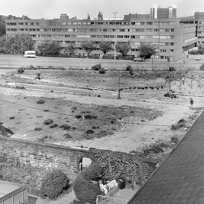 | Looking across Hanover Way to the Broomhall Flats 1982 |