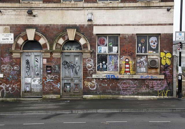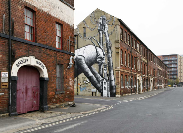 | Eye Witness Works in April 2019 after phlegm had added one of his trademark creature scenarios to the gable wall. |